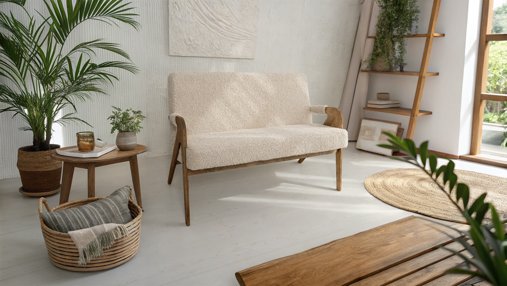 Каркас из натуральной березы, ткань из букле или велюра